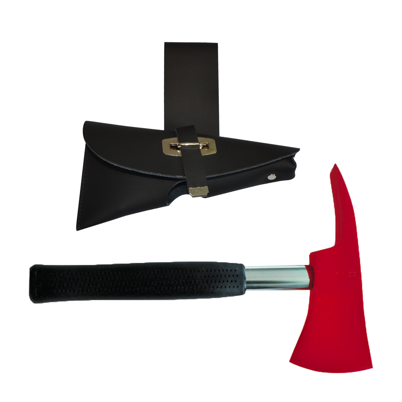 Geïsoleerde brandweerbijl met leren etui.