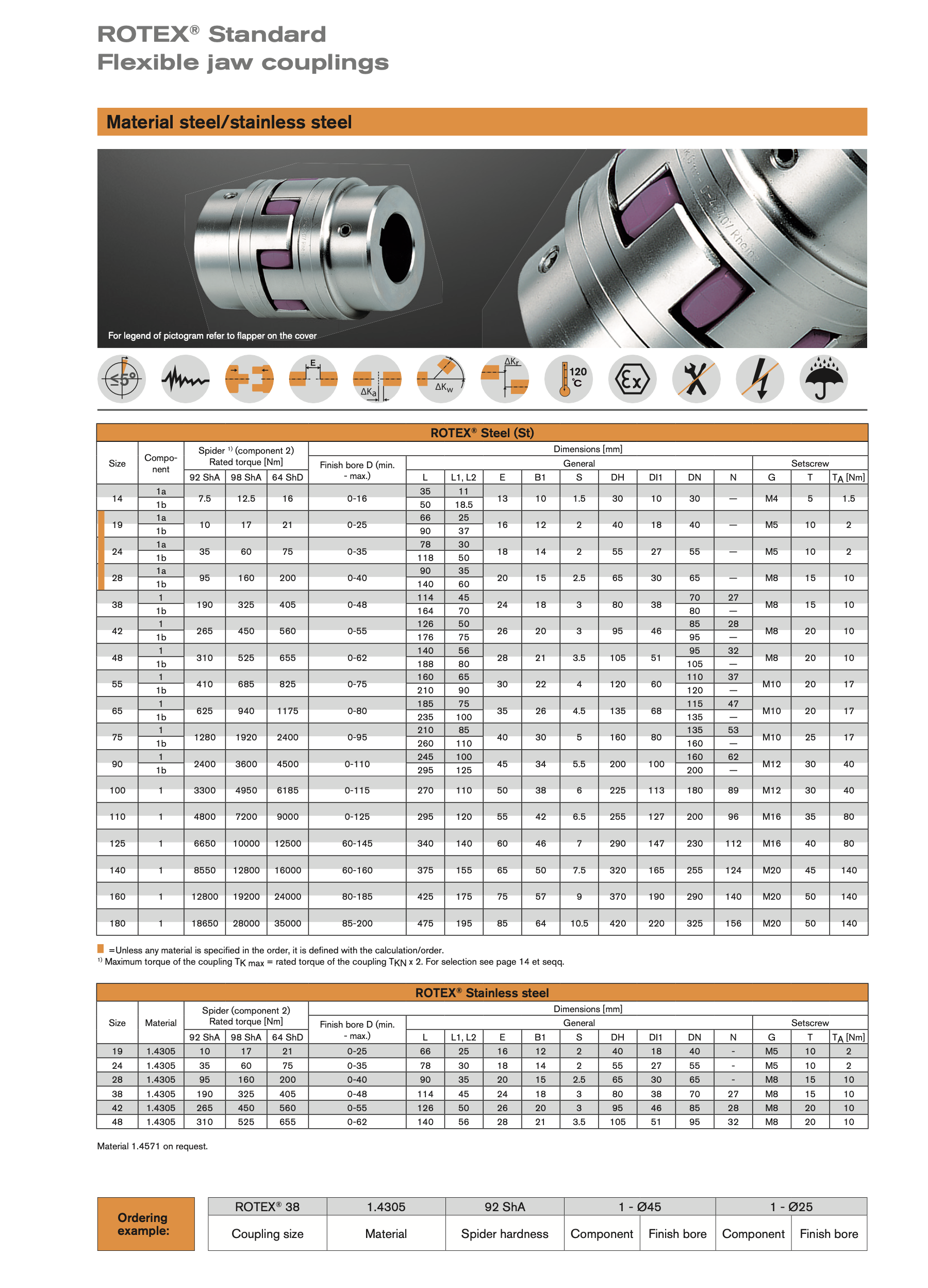 - Alle maten ROTEX-klauwkoppelingen hebben een maximale torsiehoek van 5°. Ze kunnen zowel horizontaal als verticaal worden gemonteerd.